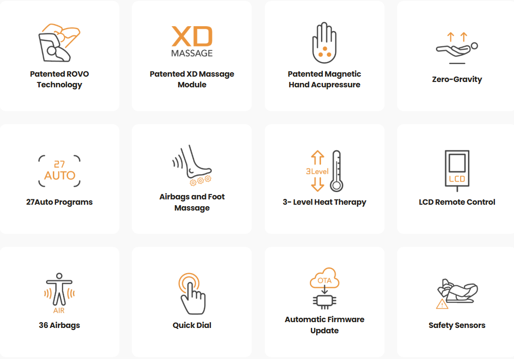 27 Programs, XD Massage, ROVO Technology, Zero Gravity. Personalized massage profiles with a therapeutic stretch no other chair can match. Falcon is best-in-class for at-home massage chairs. Intuitive and easy to use.